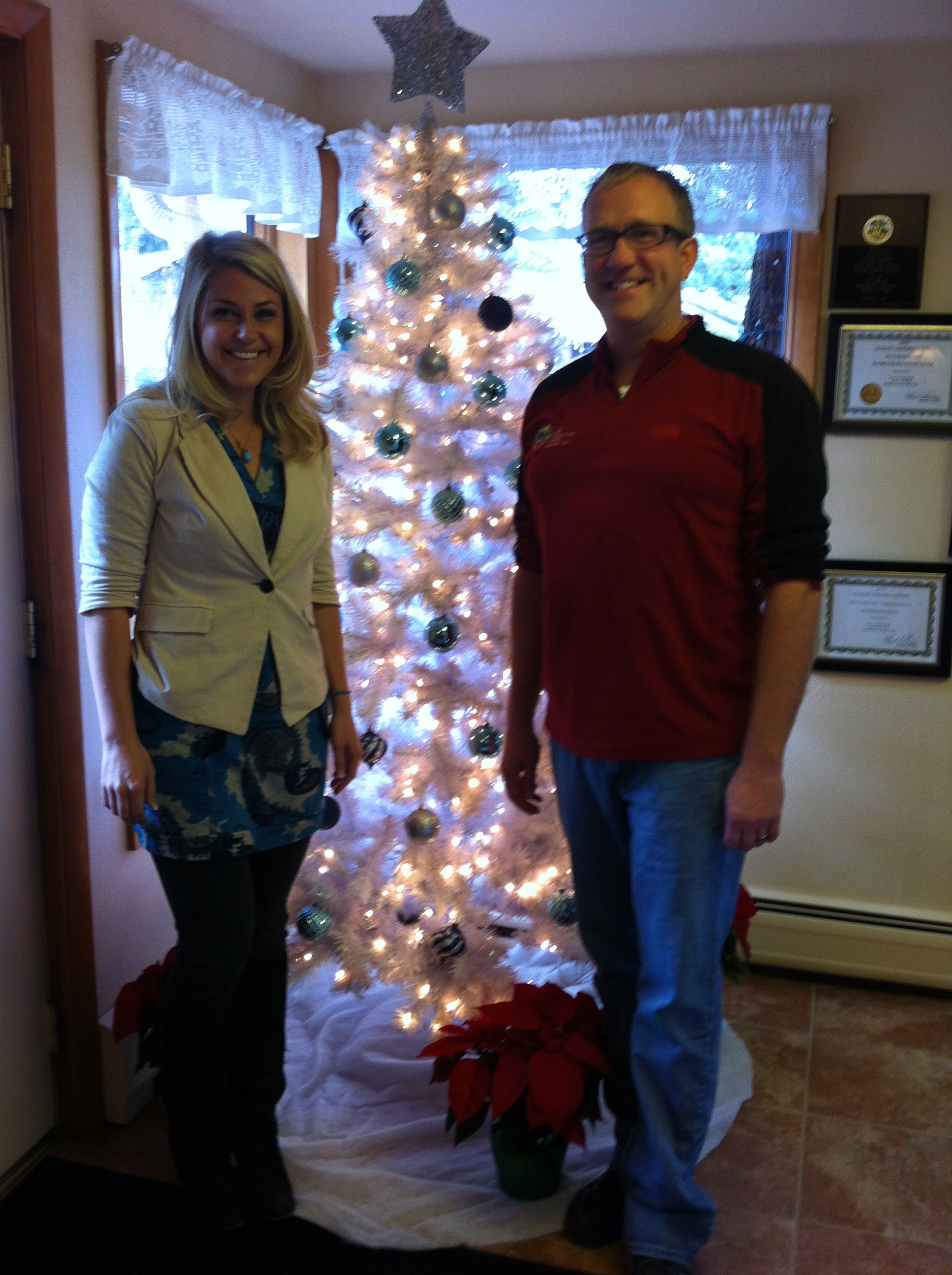Carri Wilbanks with owner of McGregor Mountain Lodge, Chris Wood, who says looks forward to repeat guests coming back year after year. Chris says “They are like our extended family.”