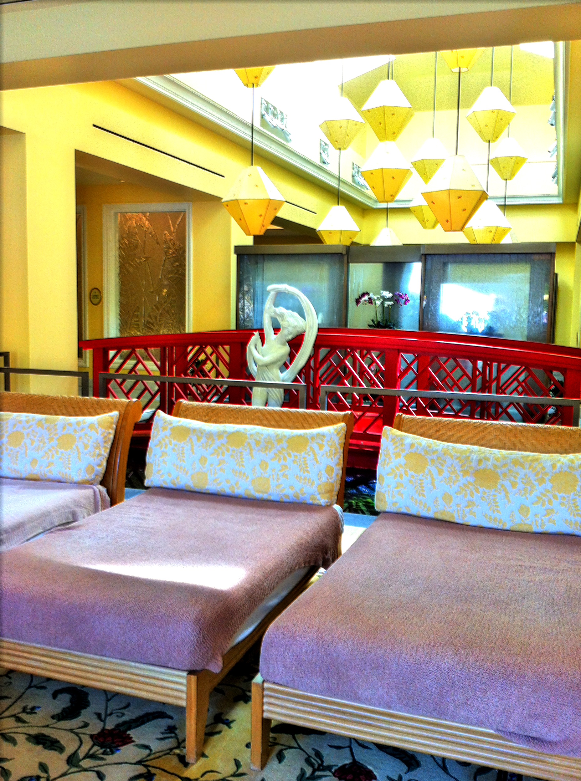 Beyond the water, there are plenty more luxuries to enjoy. Find a deeper relaxation in the acres of blooming gardens and Chinese Pagoda. Or take advantage of a massage, facial or body wrap in the spa for a deeper relaxation. If you are looking to boost the energy levels head to the full service fitness center. Yoga, Pilates or spin classes are available to rev up your endorphins.